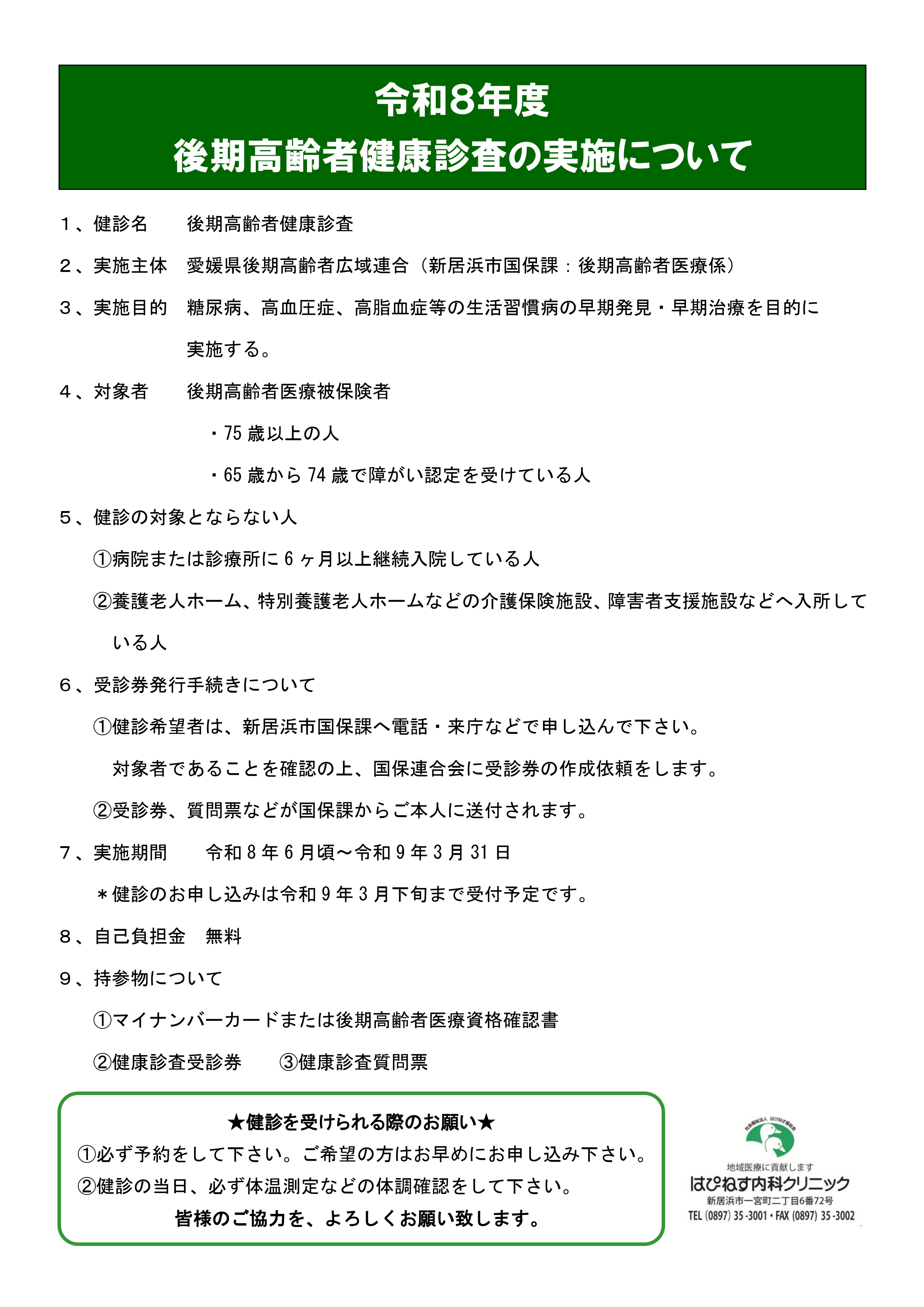 令和8年度後期高齢者健康診査の実施について