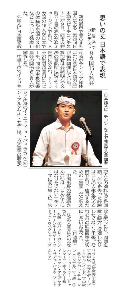 はぴねす外語学院で日本語を学ぶ留学生2名が出場しました。